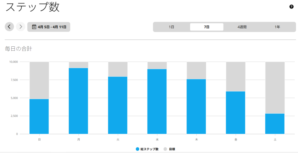 週の前半はクリアしてましたが、後半に目標を割り込んでしまいました。