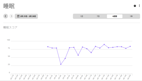 少しづつですが、睡眠スコアが80以上で安定してきています。